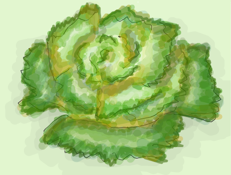 Echt gelukt is die tekening niet natuurlijk. Maar ach. Het ging om het idee. (Wie tekent er in godsnaam een krop sla…)